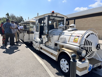 - Die Reisegruppe wird vom Bahn-Shuttle abgeholt (Kapazität: maximal 60 Sitzplätze).